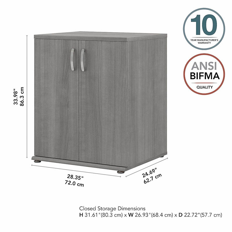 The Bush Business Furniture Universal Laundry Room Storage Cabinet with Doors and Shelves features a commercial quality design that's built to last and provides ample room for organization.