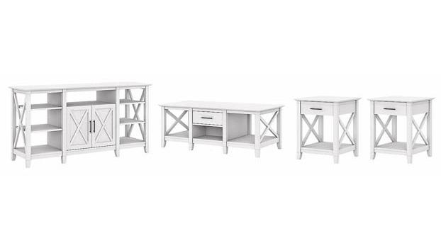 The Bush Furniture Key West Tall TV Stand with Coffee Table and Set of 2 End Tables is a perfect way to bring the feel of a coastal retreat right to your living room.