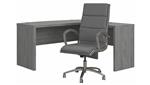 The Bush Business Furniture Echo L-Shaped Bow Front Desk with High Back Chair creates a strong presence perfect for those whose passion for business is only matched by their fashionable tastes.